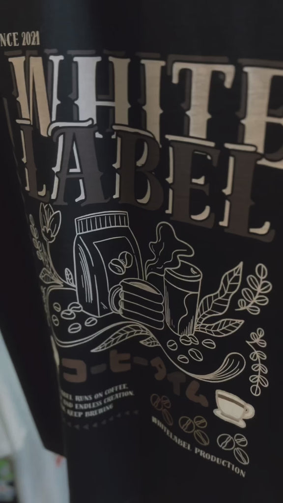THEWHITELABEL CS04 Coffee Poster Logo 300Gsm Oversize Unisex T-shirt in Black and White Color