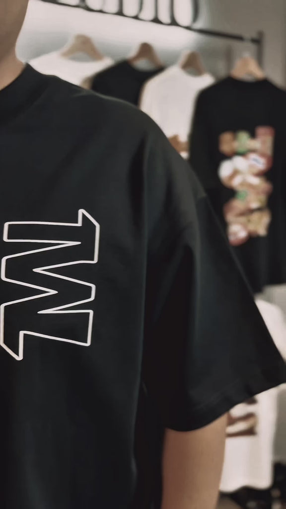THEWHITELABEL SG00 Signature Logo 300Gsm Oversize Unisex T-shirt in Black and White Color