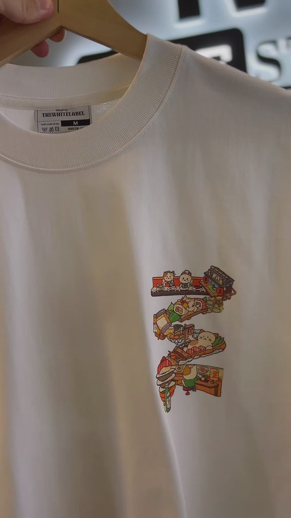 THEWHITELABEL SG01 Sushi Logo 300Gsm Oversize Unisex T-shirt in Black and White Color